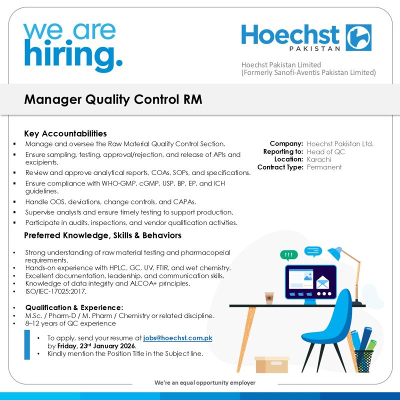 Send your resume to jobs@hoechst.com.pk * Deadline: Friday, 23rd January 2026.