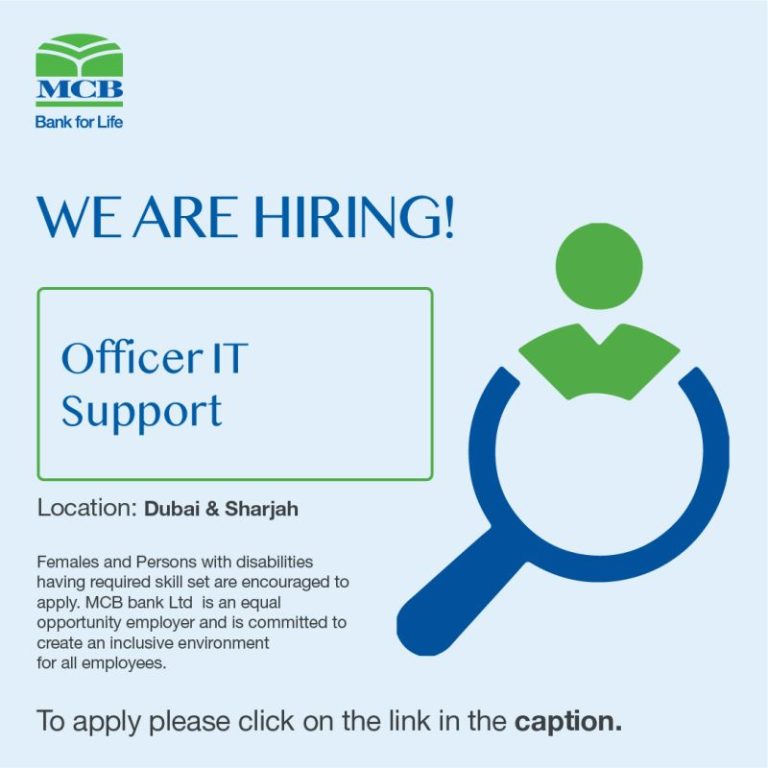 Are you looking for a career in one of Pakistan’s leading Banks? MCB Bank UAE is looking for Officer IT Support to join its team of talented, motivated and highly skilled professionals. Females with experience and work gaps and persons with disabilities with required skills are encouraged to apply.