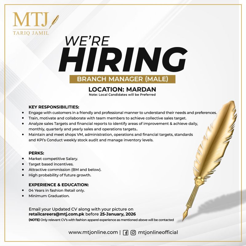 To apply for this job please visit mtj.com.pk.